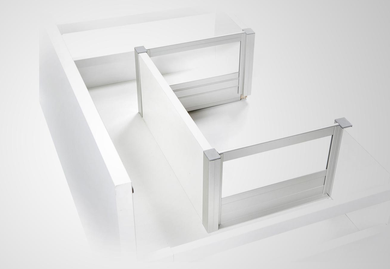 Fixol is suited for all drawers with a 16 mm thick base & back, using any of BLUM, HETTICH, GRASS, etc., runners.